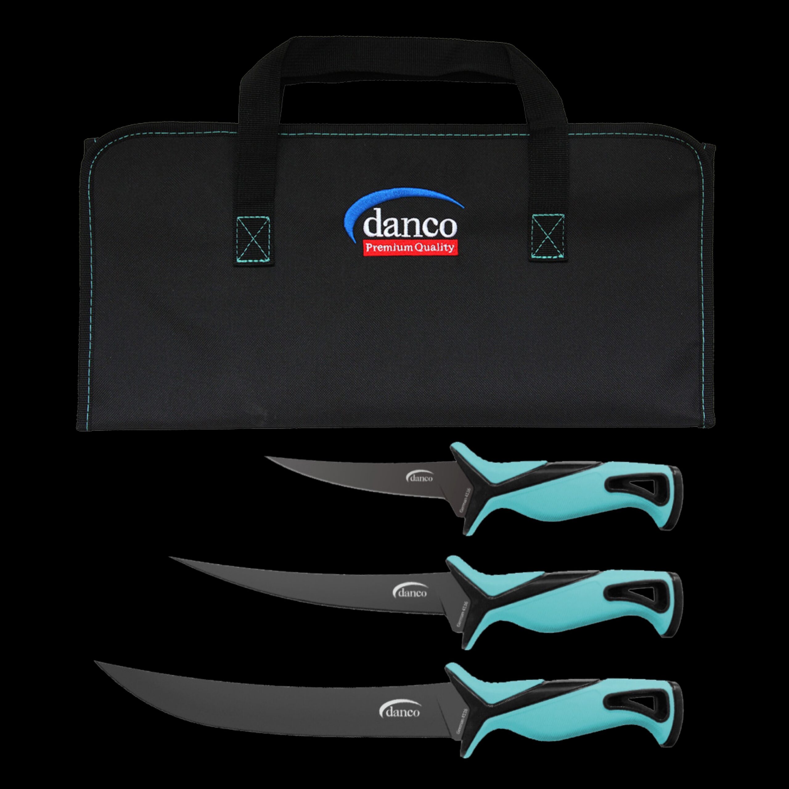 Too hard to choose just one? Now you don’t have to with our wildly popular Pro Series Roll Up Kit! Each kit contains one 5″ Flex, 7″ Flex, and 9″Stout Pro Series Knives with a convenient roll up bag. Each knife features an ultra-sharp, full tang, 4116 German stainless-steel blade with a Dupont Teflon coating and an extremely comfortable over-sized, dual molded handle with texture for added slip resistance. This is the most popular product in our line of knives and is perfect for the angler who likes to stay ready for any fillet job! No job too big, no job too small, this roll up kit can do it all!