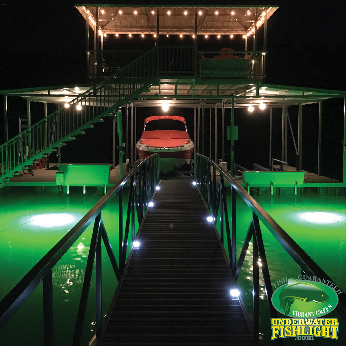 Our Natural Green Systems have the same beautiful color as our Classic Series, but they are 50% brighter! The Vibrant Green Systems illuminate a head-turning emerald green color that is sure to enhance any dock! Finally, our Caribbean Blue Systems illuminate a beautiful ice blue that works great in crystal clear water.