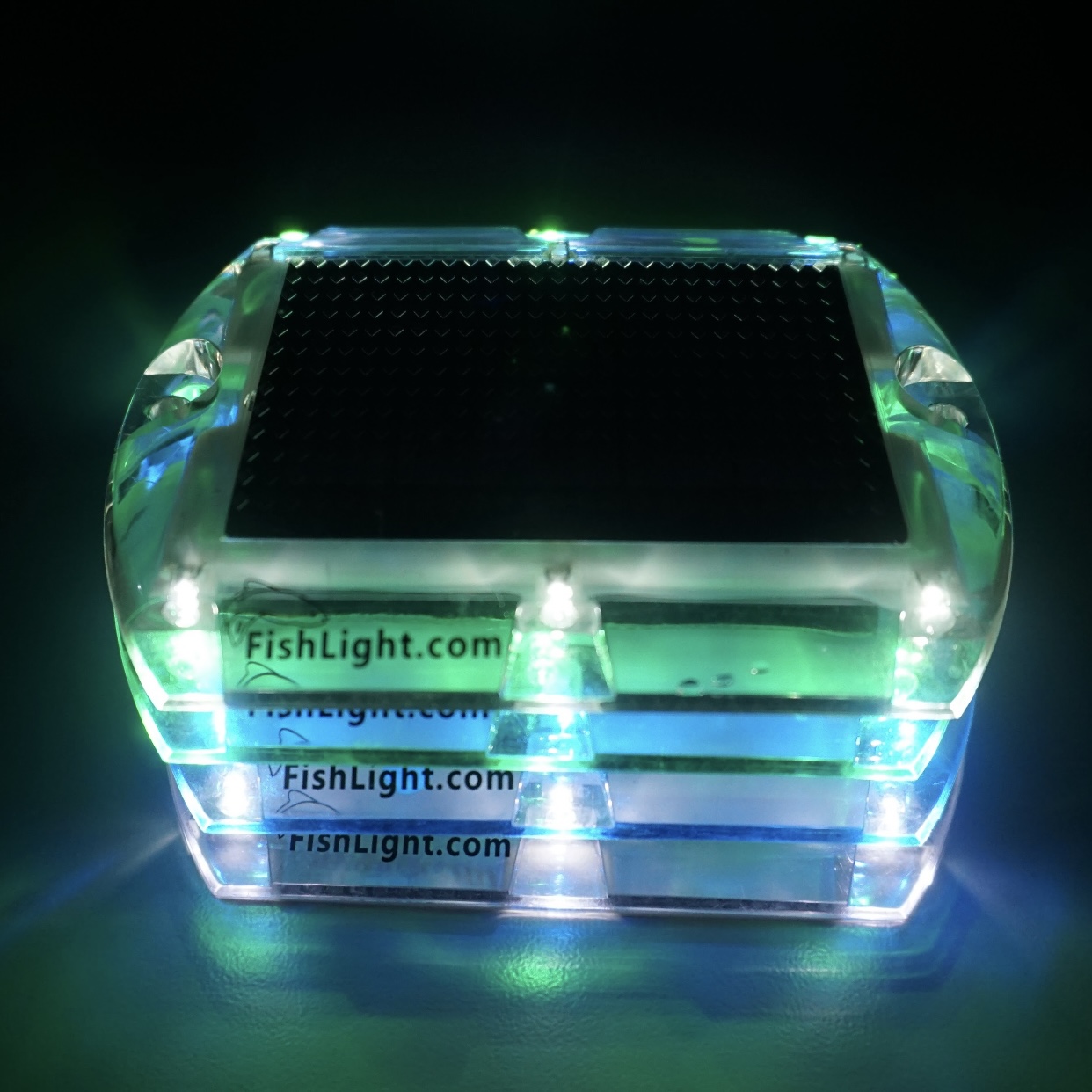 Light up your dock, desk, seawall or pathway with our solar powered Underwater Fish Light LED Dock Blocks. These LEDs were designed and built with the same quality and integrity that we put into our underwater light systems and feature a solid one-year warranty. These rugged, low-profile LEDs simply mount to your deck, dock, or seawall and will charge during the day for illumination all throughout the night. Whether you’re looking for subtle outdoor lighting to accentuate your dock or if you want to create an illuminated pathway, our Underwater Fish Light branded Dock Blocks are the way to go! You have the option for either 2, 6, or 12 fully submersible (IP68 waterproof rated) LED Dock Blocks in your choice of bright white, blue, soft white, or green.